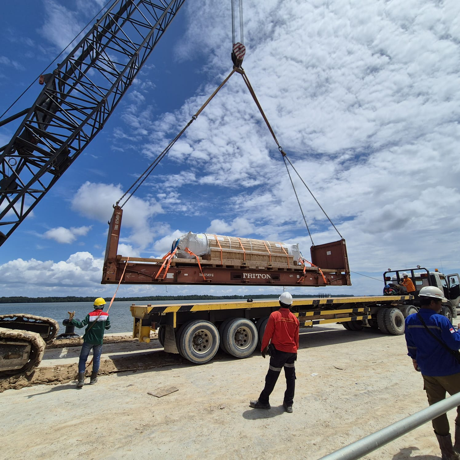 6 x 40’ Flat rack deliveries to an island where the azure Indonesian sky meets the shore. This final cargo lot, as a part of a larger long-term project, has just arrived at its destination, located on a large island which originally served as a meeting place for sailors, traders and fishermen.
