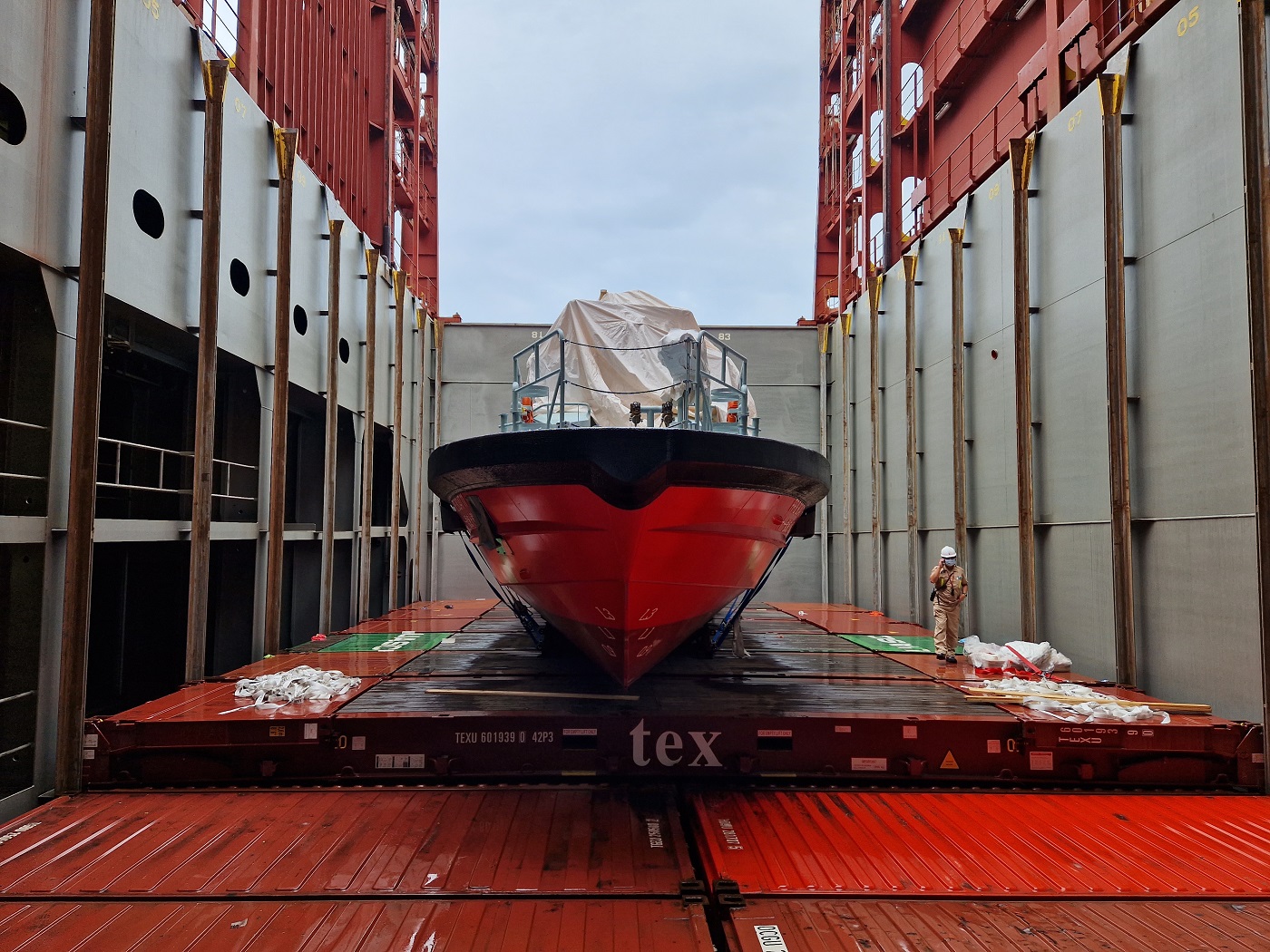 Hacklin Logistics delivered a large working boat with dimensions 19,50×5,35×6,5m with a total weight 33 ton which was successfully unloaded at a destination port in Asia.