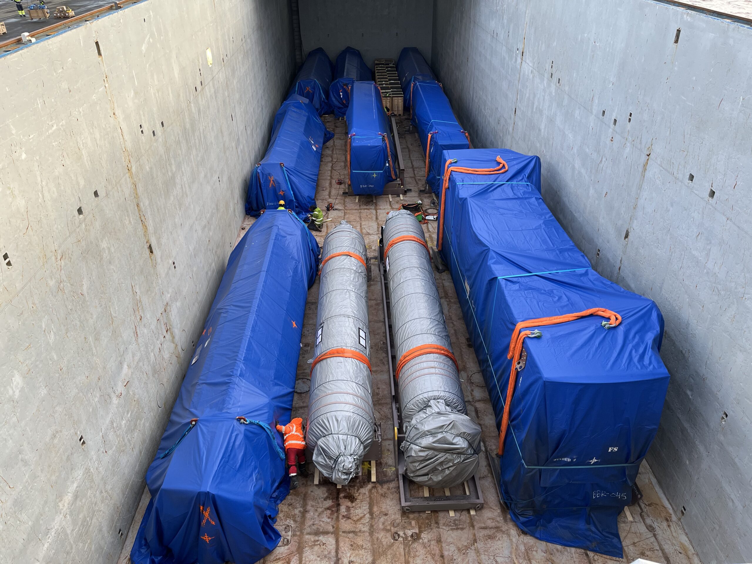 7 units of paper machine parts were loaded, stowed and secured at the Port of Raahe, Finland, on their way to Asia. Hacklin Logistics handles delivery of the machinery for further installation to a sustainable paperboard production facility: once the construction project is completed, the plant will produce fully recyclable and biodegradable materials boosting environmentally friendly packaging products production at the area.